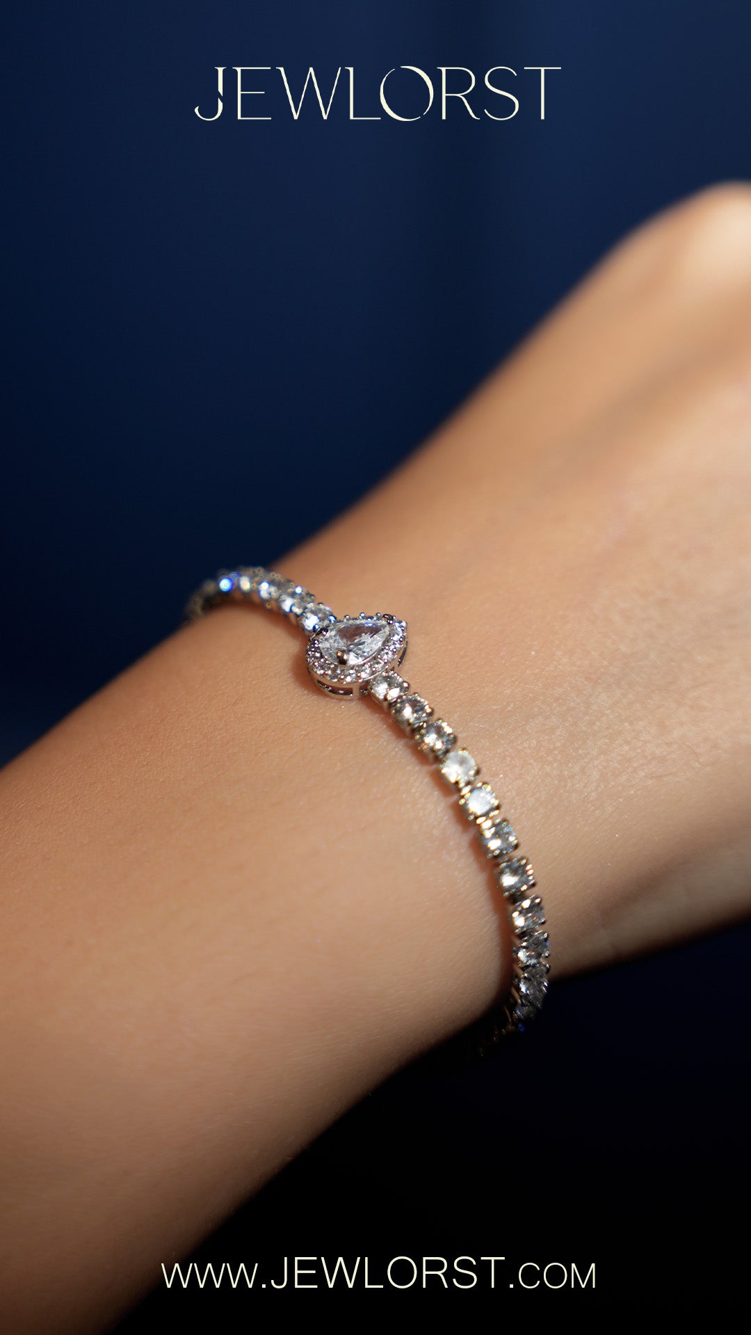 Beyaz altın kaplama bronzdan üretilen bu bileklik, ortasında dikkat çeken büyük taş detayı ve ince dizilmiş Swarovski taşlarıyla sade ama etkileyici bir görünüm sunar.
